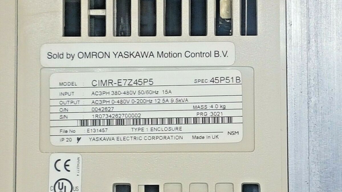 OMRON / YASKAWA VARISPEED E7 CIMR-E7Z45P5 9,5kVA DRIVE 400V-5.5kW
